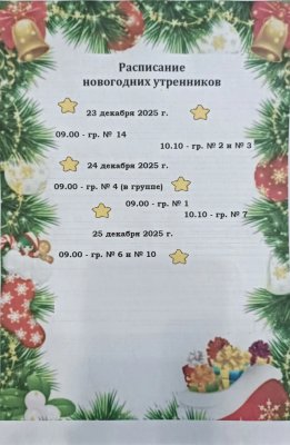 Расписание новогодних утренникоа