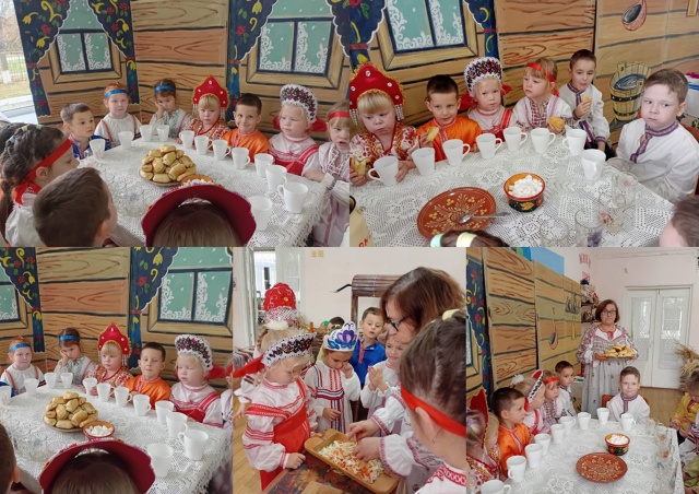 Изба была украшена природными материалами: венками из осенних листьев, горошками и, конечно же, капустой, которая стала главным героем праздника. Взрослые помогали детям делать различные поделки, изготавливая кукол и украшения. На столах уже стояли разнообразные блюда из капусты — пироги, салаты и квашеная капуста, которые символизировали богатство и достаток.