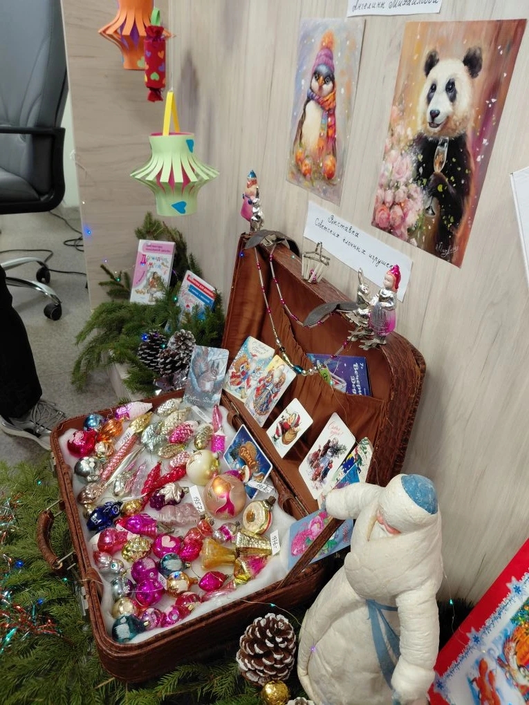 На мероприятии детям было рассказано о классических новогодних игрушках, которые были популярны в Советском Союзе: ёлочных шарах, стеклянных фигурках, а также о традиционных украшениях, таких как снежинки и гирлянды. Была организована выставка,где дети увидели эти игрушки и даже потрогали их.